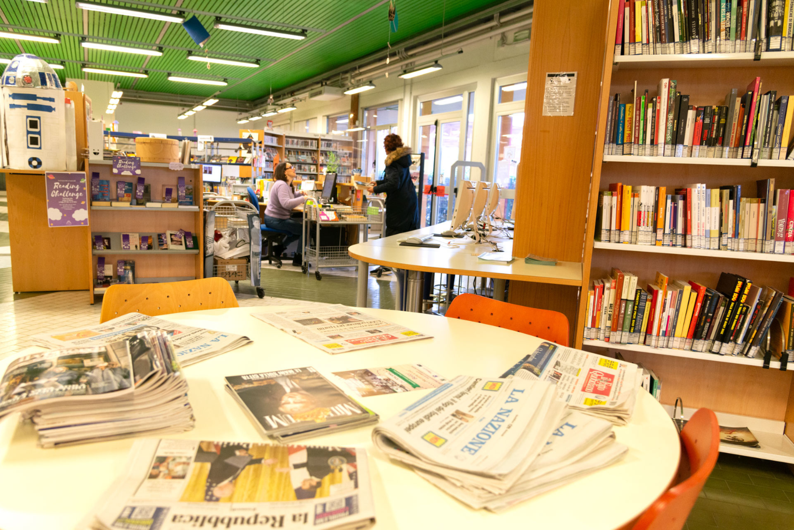 Trovi anche uno scaffale multiculturale con materiali disponibili in tante lingue diverse, come l’inglese e il francese, il cinese e l'urdu.